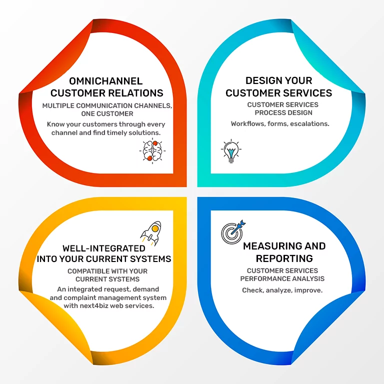 next4biz increases your agents’ effectiveness so they can provide better customer service. The system keeps track of each step, each department and each employee on the basis of criteria such as products and categories until the issue has been resolved. It also provides feedback on the dashboard and through reports, allowing you to constantly gauge any change or slip in standards and make timely improvements.