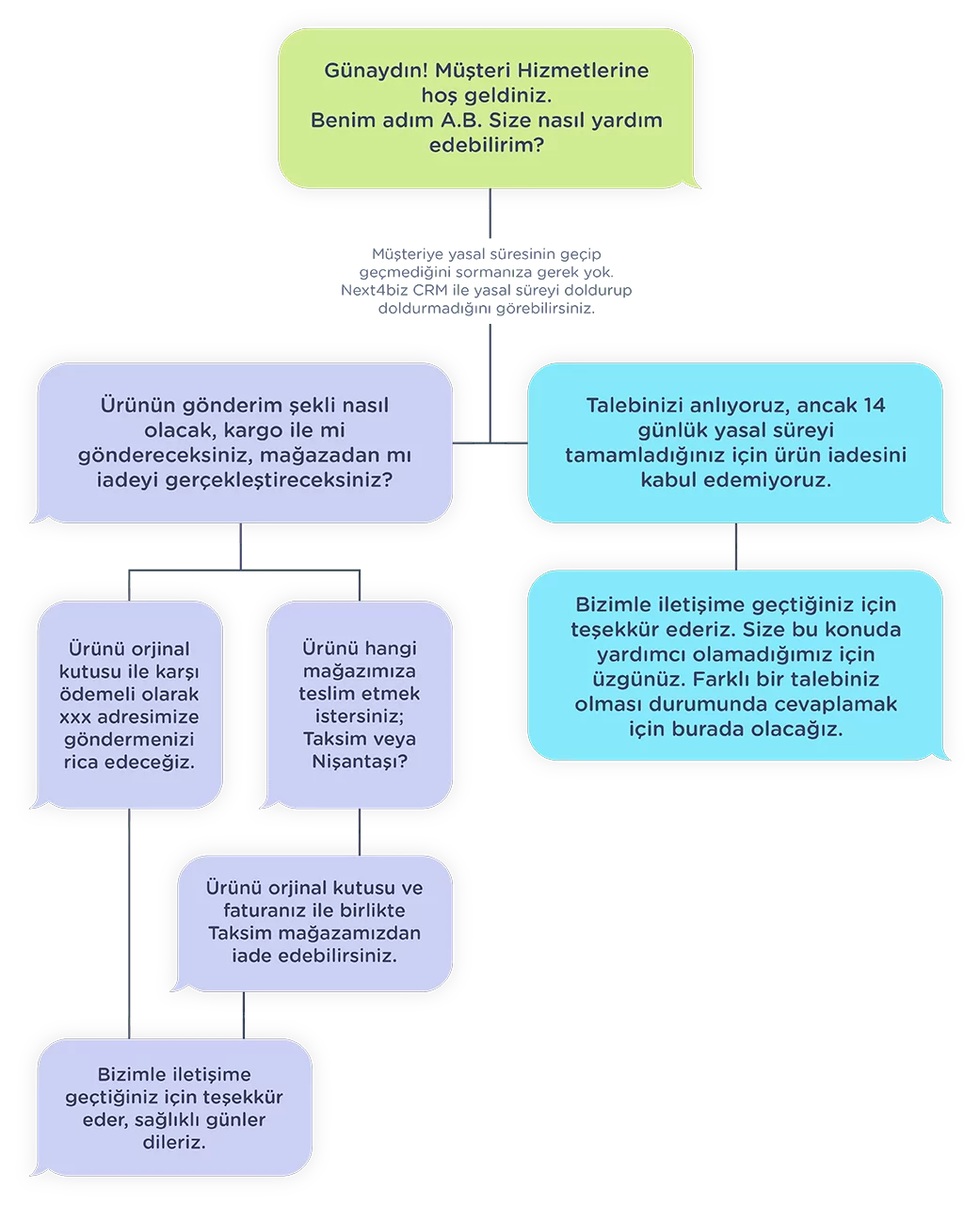 “Sorunuzu anlıyorum fakat bu konuda yardımcı olacak doğru kişi ben değilim. Sizi bu tür konularda uzman olan departmana bağlayacağım.”